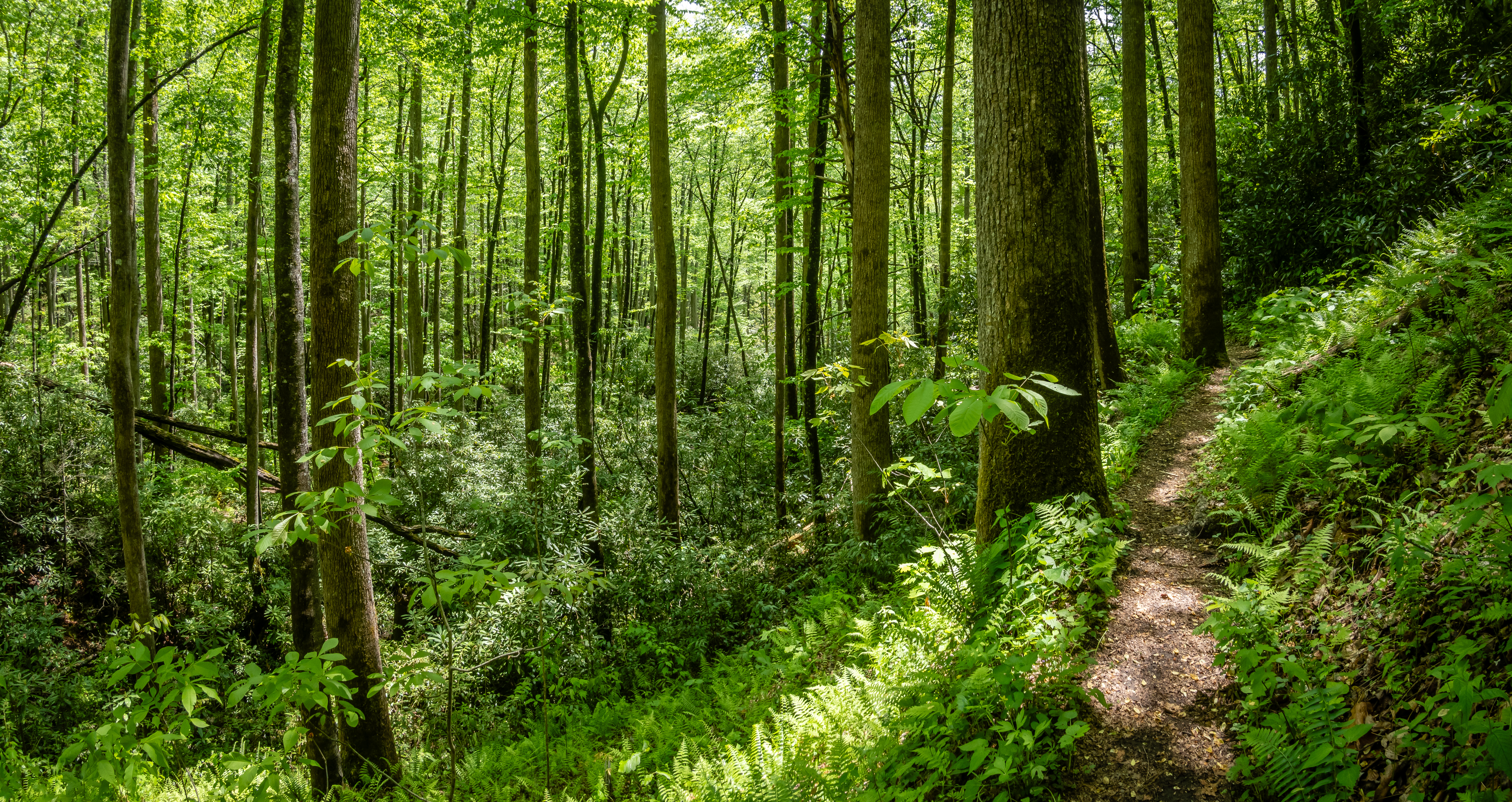 The next day the weather forecast was a bit more promising so we head into the Pisgah National Forest for a popular hike - the Cove Creek and Caney Bottom Trail. This is a popular 4.6 mile hike with 600 feet of elevation gain. The parking area supposedly fills up fairly early in the morning so we get out earlier than usual. We get to the parking area and it was already full but the overflow lot a tenth of a mile further down Forest Road 475 still had open spots. The trail starts heading up the gated gravel road to the Cove Creek Group Campground. The gate was open and somebody was directing traffic into the camping area. It was a pretty walk with lots of wildflowers along the road and a view of the creek. It appears that this section of the road was recently rebuilt from some previous flood damage.