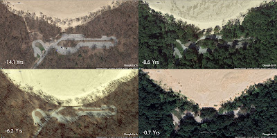 The park is spread out over about 20 miles with lots of individual parcels. We knew there was a lot to see if we attempted to get to them all so we selected a few locations to see and head out. Our first stop is Mount Baldy. If you are expecting a true mountain in northern Indiana, you will be disappointed since it is only 126 feet tall. What makes this place at the far northeastern edge of the national park worth seeing is a “living” sand dune. Wind blowing off of Lake Michigan is constantly changing this huge sand dune. It was quite apparent when we pull into the parking lot to look around just how active this place is. The edge of the dune was encroaching into the parking lot. It wasn’t completely clear during our visit just how much Mount Baldy has moved over the years but I later went into Google Earth and used the historical satellite imagery to get a better look. I pulled up the most recent image from a little over 6 months ago and time traveled back to look at how much it has changed. The montage below has 4 images that go back about 14 years. It turns out that the parking lot used to have a whole other section to it which is now completely covered. It has moved 82 feet in those 14 years! It’s unclear if the park service plans to try to save the building here or will let it succumb to the forces of nature?